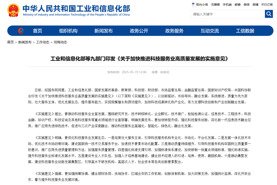 近日,工业和信息化部联合八部门印发了《关于加快推进科技服务业高质量发展的实施意见》,为科技服务业发展指明了方向,也为整个科技服务业的繁荣奠定了坚实的基础,意见内容如下: